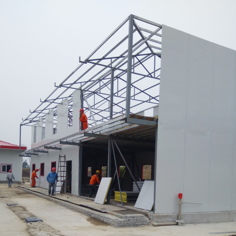 2.拆裝便捷,可作應(yīng)急之用房屋可多次拆裝,重復(fù)使用。安裝過程只需簡單工具,可做應(yīng)急之用。平均每人每天可安裝20~30平方米,6人只需兩天即可完成100平方米的活動(dòng)板房制作。