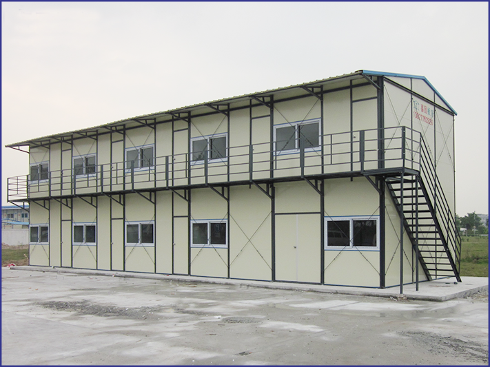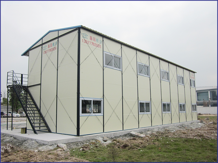 | ㈢、安裝快捷,施工周期短:安裝過(guò)程只需簡(jiǎn)單工具,方便快捷,平均每人每天可安裝20~30平方米,6人只需兩天即可完成3K×10K標(biāo)準(zhǔn)活動(dòng)板房一棟。 |