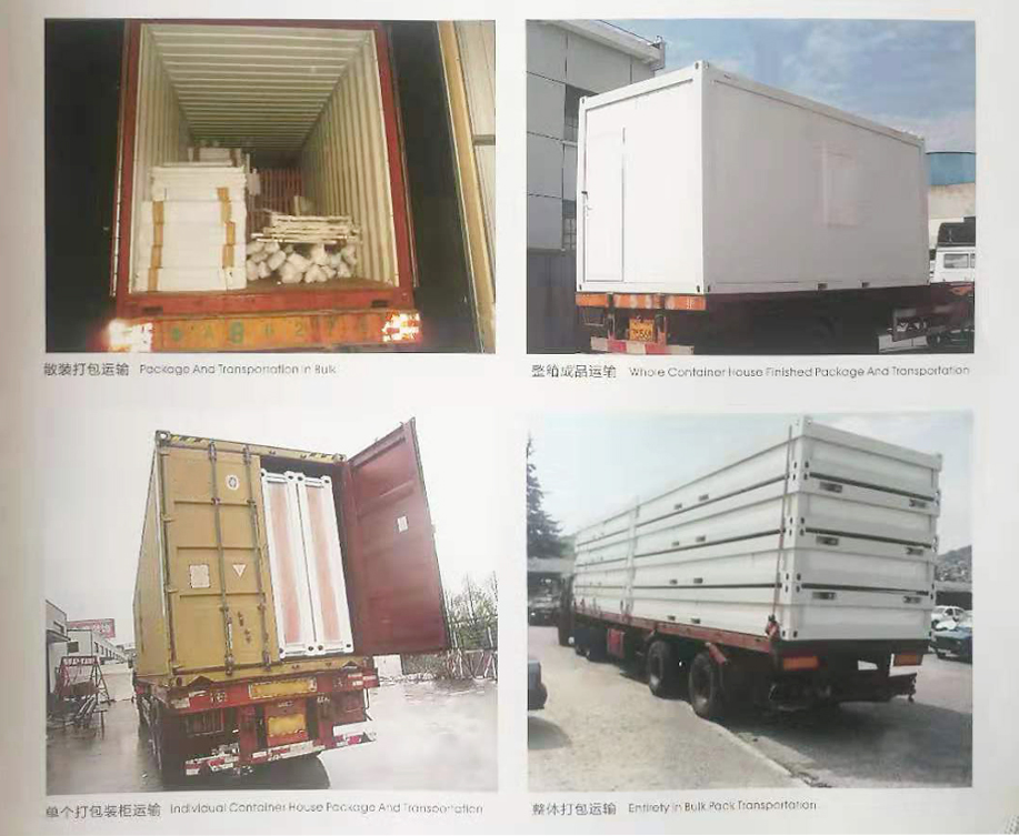 | 根據(jù)集裝箱房屋的構(gòu)件大小以及不同的組裝方式,組裝式集裝箱房屋的運(yùn)輸方式主要可分為散裝打包式、單個(gè)打包裝柜式、整箱運(yùn)輸式及整體打包運(yùn)輸式4種運(yùn)輸方式。每種運(yùn)輸方式都有各自的優(yōu)點(diǎn),客戶根據(jù)自身需求來選擇購(gòu)買集裝箱房屋的種類,同時(shí)也決定了組裝式集裝箱房屋的運(yùn)輸方式。 |